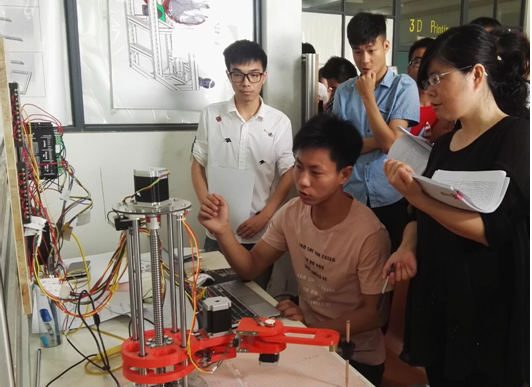 威廉希尔williamhill官网不断加强和丰富第二课堂教育,坚持科技创新人才培养,以创新创业活动和学科竞赛为抓手,提高人才培养质量。2017年学院已举办各种类型科技讲座数十场,联合企业举办“金点子”创意大赛,精心组织培育“挑战杯”项目10项参加校级选拔,其中两项通过校初审,并勇夺省赛一等奖1项、二等奖1项,并最终为我校获得一张宝贵的国赛“入场券”;2名学生参与第三届中国“互联网+”大学生创新创业大赛获金奖;“高教杯”全国大学生成图技术与产品信息建模创新大赛获得团体二等奖1项,个人一等奖2项、二等奖7项;“学创杯”湖北省大学生创业综合模拟大赛获得一等奖2项、二等奖1项;测控专业学生获得“2017世界机器人大赛仿人机器人接力赛”二等奖,湖北省工程训练及综合能力大赛二等奖。此外,机械学子还积极参与溢达、富士康等企业主办的创新创意大赛,均取得好成绩,人才培养质量受到社会各界的广泛认可。