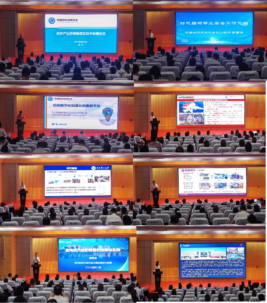 会议伊始,中国纺织工业联合会副会长徐迎新从纺织行业发展概况、行业投资信心增强、科技创新与人才培养、知识产权保护与合作链条、未来展望与挑战等五个方面进行了讲话。随后,徐卫林院士重点介绍了纺织新材料和装备领域的研究与实践创新,指出新材料给纺织装备带来的挑战和改进需求。他强调了纺织装备创新对于适应新材料应用的重要性,并呼吁纺织企业和教育机构加强合作,共同推进纺织行业的科技进步和产业升级。孙以泽院士深入分析了纺织行业的当前形势与未来发展方向,着重强调了技术创新对行业转型升级的关键作用。面对挑战,他认为通过采纳智能制造和新材料应用等先进技术,纺织业能实现跨越式发展。