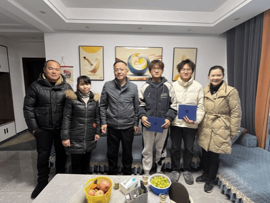 1月20日,干文勋、周玉艳和24级辅导员肖锦一行来到鄂州市陈同学家中,与学生家长进行亲切交谈。干书记不仅分享了威廉希尔williamhill官网优秀校友代表的励志成长经历,鼓励陈同学和他的双胞胎哥哥(2024年一同考入我校)要珍惜大学时光,认真规划自己的学业和未来。他还强调,大学不仅是知识的殿堂,更是塑造人格、锻炼能力的舞台,希望学生能够充分利用大学提供的资源和平台,努力学习,不断进步,取得更加优异的成绩,以此来回报父母的养育之恩,为社会的发展贡献自己的力量。周书记对陈同学兄弟的学习和生活给予了关心和指导。陈同学及其家人对学院领导的关怀和鼓励表示感谢,并表示将督促孩子更加努力,不辜负学院领导和老师们的期望。