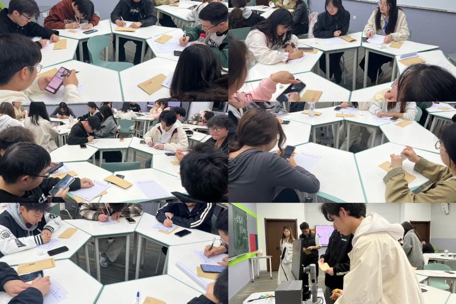 活动以一场升级版的“成语接龙”拉开序幕。不同于传统接龙规则,同学们需用下一成语的首字与上一成语的第二个字“拼音联动”。同学们都措手不及,笑声不断。“一开始以为只是普通接龙,结果‘天涯海角’接‘雅俗共赏’的谐音梗直接让我大脑宕机!”一名同学笑道,“但正是这些‘翻车现场’,让我们瞬间放松下来。”主持人笑着指出:“笑声是最短的心灵距离,今天的‘接龙事故’反而成了最好的破冰剂。”
