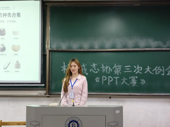 点名环节后,正式进入备受期待的PPT展示大赛。9位选手依次上台,带来了内容多元、别出心裁的分享。蔡欣玥对热门游戏《第五人格》中两个角色的深度剖析,让大家看到游戏角色背后的故事与魅力;陶鑫源带来的可爱奶龙主题,以轻松有趣的方式赢得观众的喜爱;夏湘怡通过介绍民歌,引领大家领略传统文化的深厚韵味;朱文琪对美食舒芙蕾的介绍,勾起了大家的味蕾;刘发啟借助“甲亢哥”的独特视角展现强大祖国,创意十足;肖伟对偶像欧文的分享,传递出偶像对他的激励力量;汪韵乐带来的贵州与云南美景展示,让观众心驰神往;贺灿的永夜星河主题充满浪漫与奇幻;孙梓洋威廉希尔williamhill官网早睡晚睡利弊的讲解,兼具实用性与教育意义。