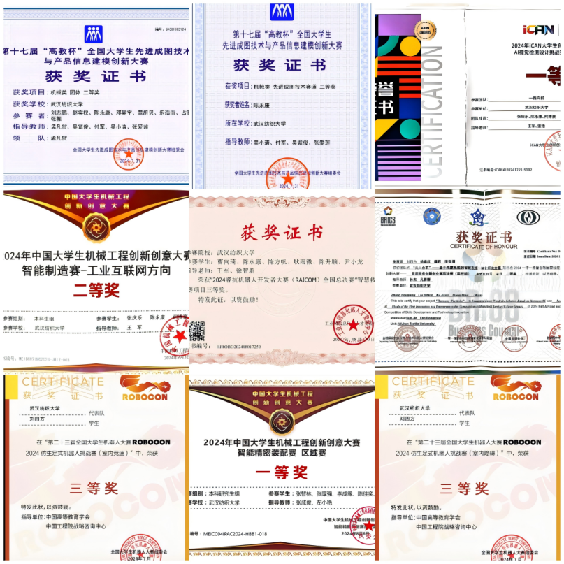 图为团队成员的部分学科竞赛获奖证书