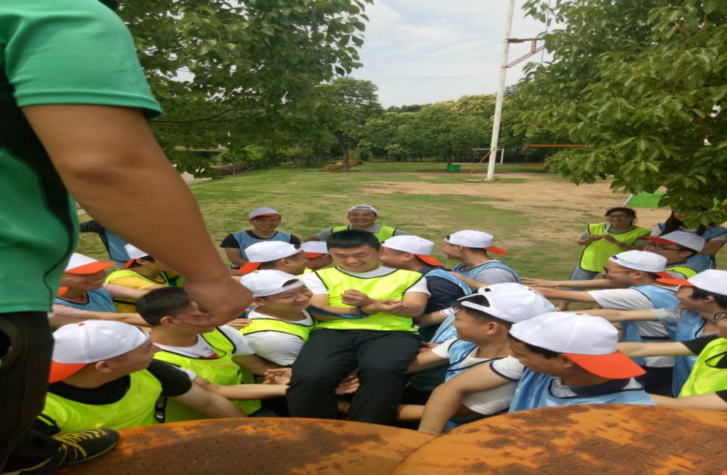 最后压轴的活动是“毕业墙”,每个人都必须徒手翻阅4米多的高墙,这是一个依靠团队力量才能完成的挑战。同学们有条不紊的推举团队领导者,坚决执行团队决定的方案,身体健壮的同学都自告奋勇担当人墙,最终30多名队员在6分钟内全部翻阅高墙。这是团队凝聚力的绝佳体现,是勇气与智慧的完美融合。