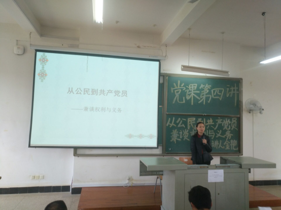 4月27日,威廉希尔williamhill官网于阳光校区08-D201开展了第七十五期党课第四讲,校学工部部长、团委书记金艳教授为威廉希尔williamhill官网近200名入党积极分子带来了《从公民到党员 兼权利与义务》的主题报告。