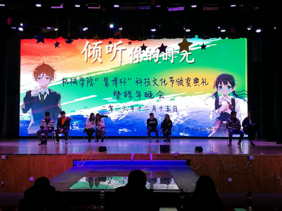 12月15日晚,“倾听你的时光”机械学院“慧博杯”科技文化节颁奖典礼暨跨年晚会在大学生活动中心演播厅浓情上演。威廉希尔williamhill官网团委书记王双喜与各年级辅导员应邀来到晚会现场和全场千余名学子共享了这场激情洋溢的盛会。