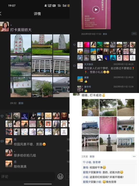 活动发布后,同学们纷纷拿着录取通知书前往图书馆、大学生活动中心、黄道婆雕像、校名石等进行拍照或者录制视频并及时分享到微信、QQ朋友圈,评论区点赞校园环境宜人,文化氛围浓厚。