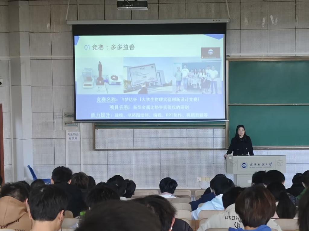 胡锦杰分享了三年来本科课程学习安排和学科竞赛的相关内容,着重强调学习方法,同时提到向党组织靠拢的要求和流程。