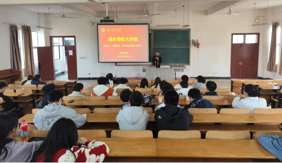 向鑫波围绕“感恩”“选择”“努力”三个主题,与学弟学妹们分享了他个人的大学四年成长经历,以及就业考研、工作、生活和大学成长的关联,强调了早立目标,持之以恒的重要性。最后,向鑫波学长表达了对学弟学妹的学业进步生活顺遂的美好祝愿。