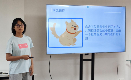 参评的寝室长们制作了精美PPT,从学风建设、卫生建设、宿舍管理、文体活动开展、宿舍成员所获荣誉等多个方面汇报了各自的寝室建设工作,通过激烈角逐,5位寝室长和5间宿舍脱颖而出被授予"优秀寝室长"“优秀宿舍”称号。两位辅导员表示,寝室是同学们在学校的家,是生活、学习、休息的地方,也是学生交流思想、培养综合素质的重要活动场所,要秉持一屋不扫,何以扫天下的态度,群策群力共建文明宿舍。寝室长要身体力行、以身作则,起好带头作用,善于了解本宿舍同学的思想、学习及生活情况。