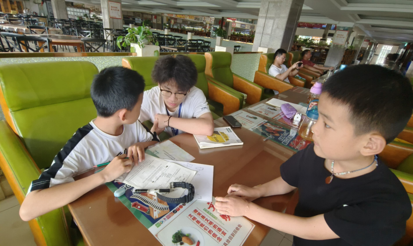 为了响应共青团中央“关爱农民工子女”的号召,同时加强威廉希尔williamhill官网志愿者协会与社会的联系,践行“让爱心永驻校园,用真情回报社会”的宗旨,威廉希尔williamhill官网志愿者协会从3月4日启动的“七彩课堂——食堂辅导”支教活动至今已有三个月了。2023年6月4日,本学期最后一次“七彩课堂”在食堂圆满结束。