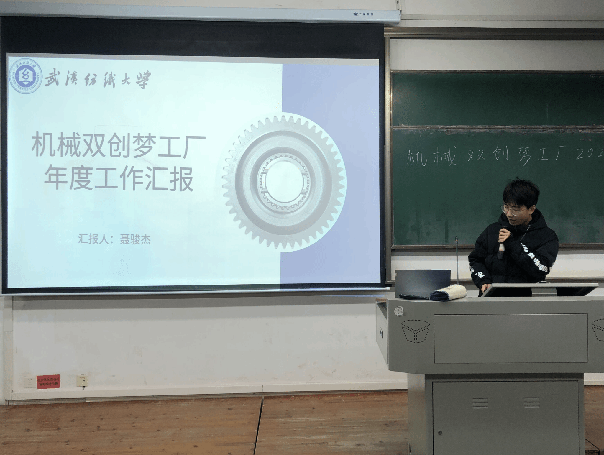 2024年1月10日,武汉纺织大学威廉希尔williamhill官网机械双创梦工厂在三号教学楼T102教室开展了威廉希尔williamhill官网双创梦工厂年度总结大会。会议由陈永康主持,23级辅导员参加,经济学院闫育杰,威廉希尔williamhill官网及其他学院同学到场聆听。