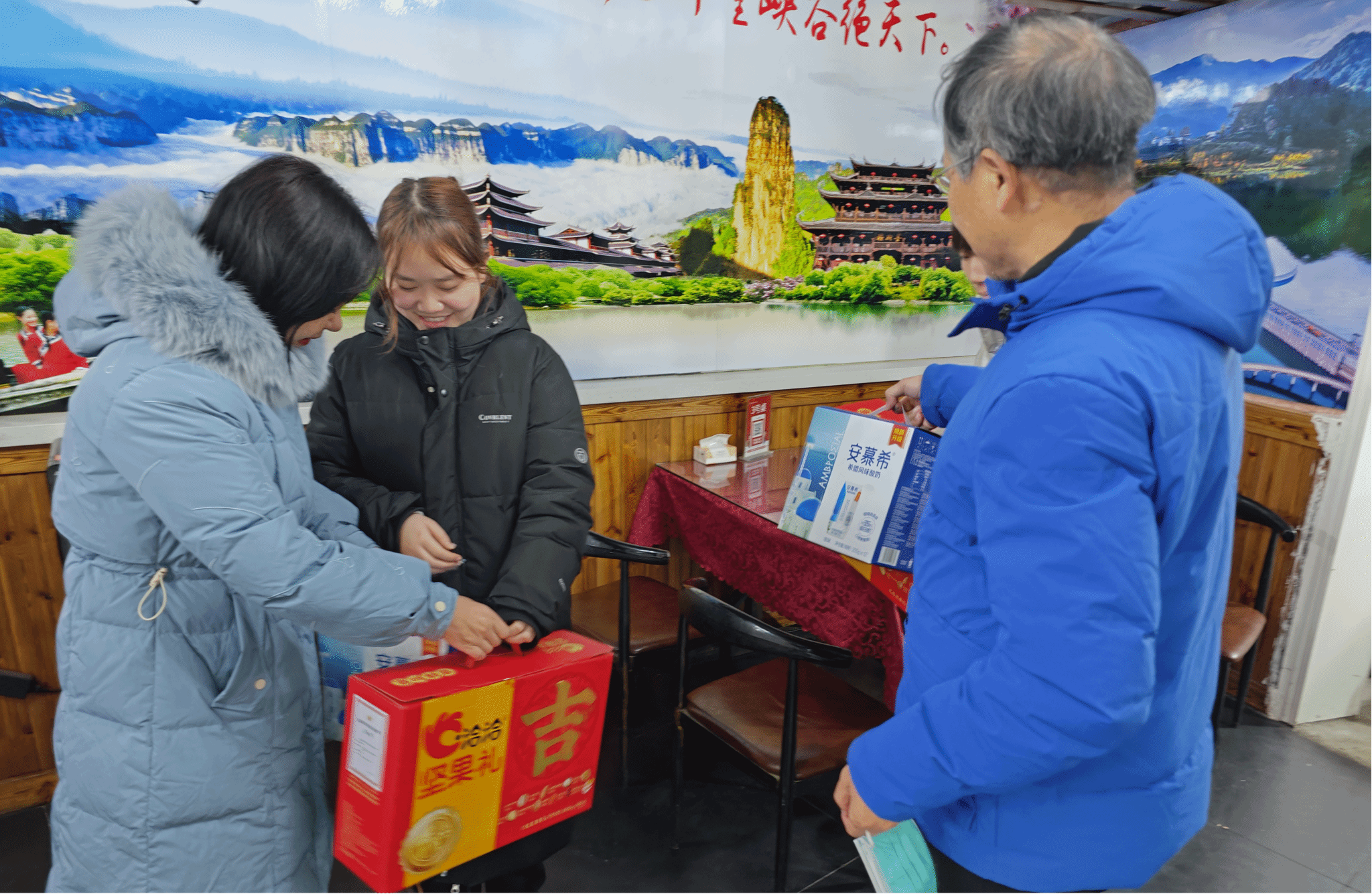 干书记详细了解学生的兼职工作和生活情况,叮嘱学生要注意防寒保暖、规律作息、保护好自己,同时,向他们致以新春问候,询问学生后续安排,回家车票有没有买好……鼓励他们要树立远大的目标,将吃苦耐劳的宝贵品质转化为实现梦想的强大动力。