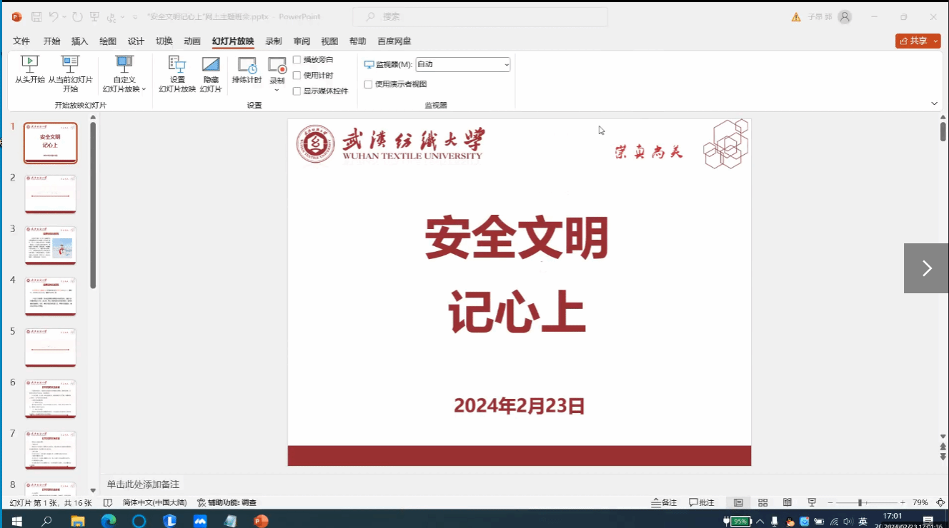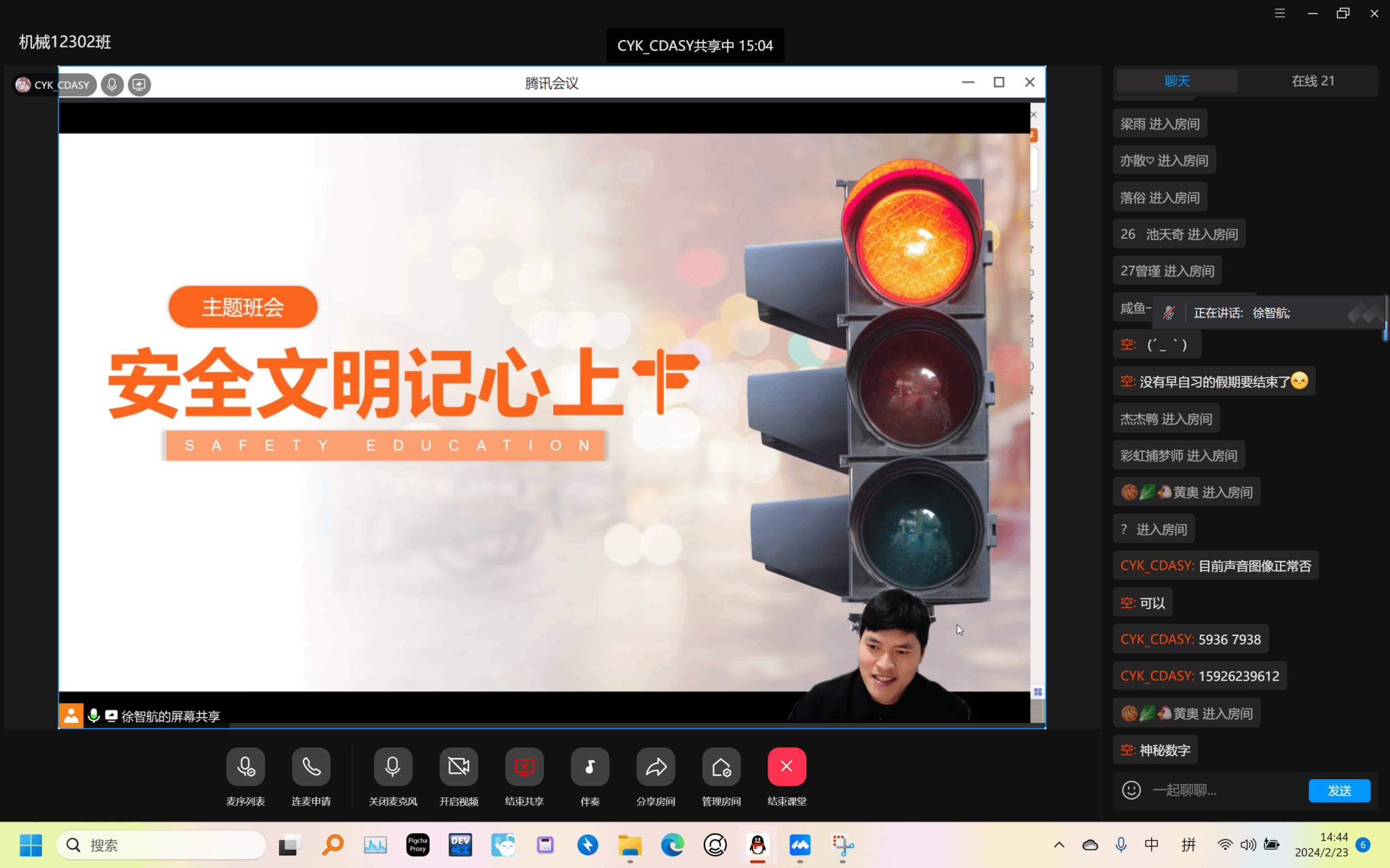 为做好2024年春季学期开学准备工作,提醒同学们注意返校日程、做好出行安全等各类防护措施,2月22日-23日,威廉希尔williamhill官网各年级召开2024年春季学期“安全文明记心上”主题教育线上班会,会议由各年级辅导员和班主任主持,全体同学参会。