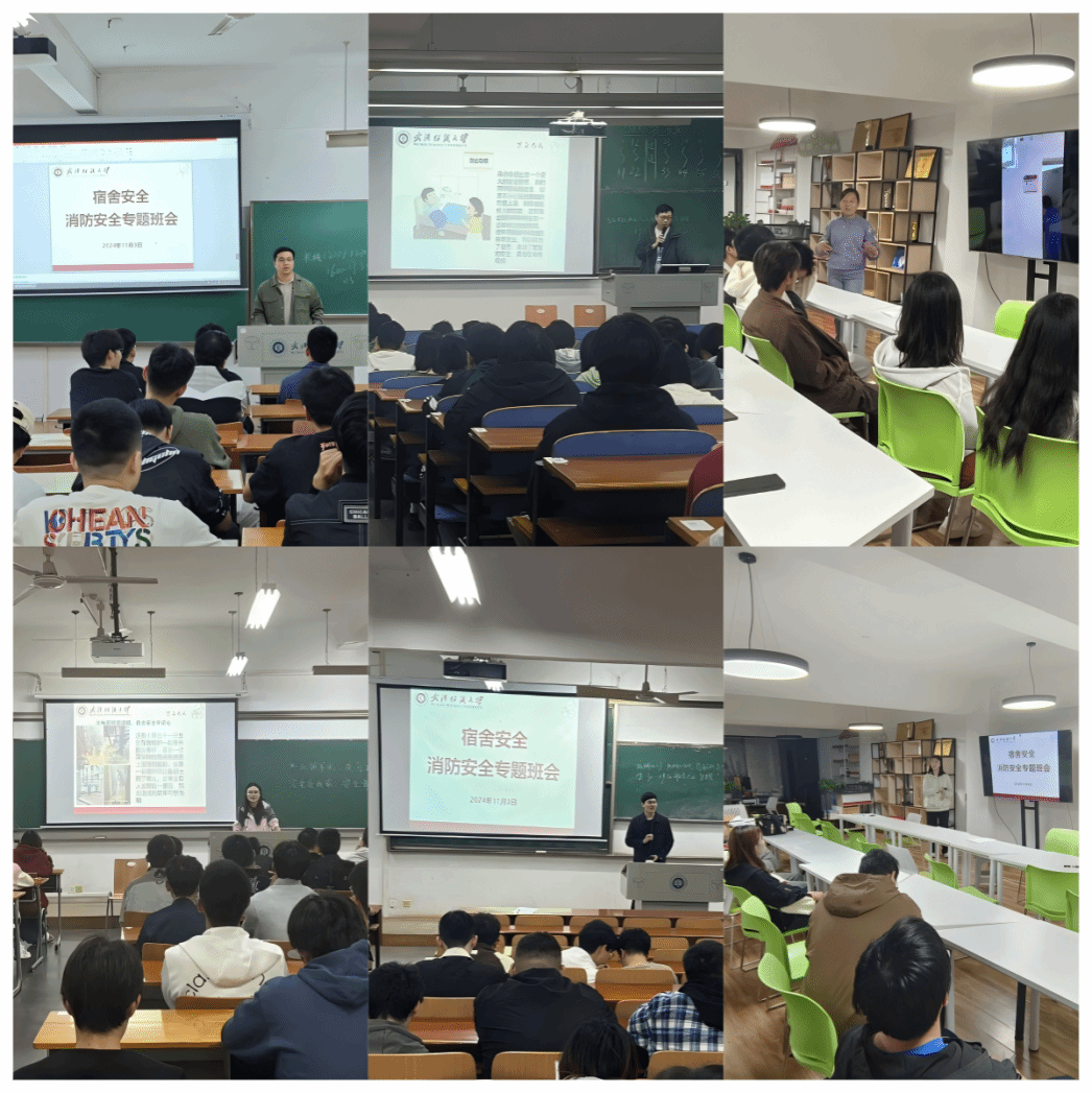 全体辅导员和班主任老师从“消防安全教育认识”、“消防安全防范要求”、“电动自行车安全教育”和“正确合理使用电器”四个方面进行讲解,通过近期案例,强调了宿舍消防安全的重要性,提醒学生禁止私拉乱接电线,禁止使用大功率电器,禁止在公寓内使用明火燃烧易燃易爆物品等注意事项。此外,各年级辅导员还组织了学生干部和学生党员深入走访宿舍,开展“消防安全进宿舍”宣讲活动。