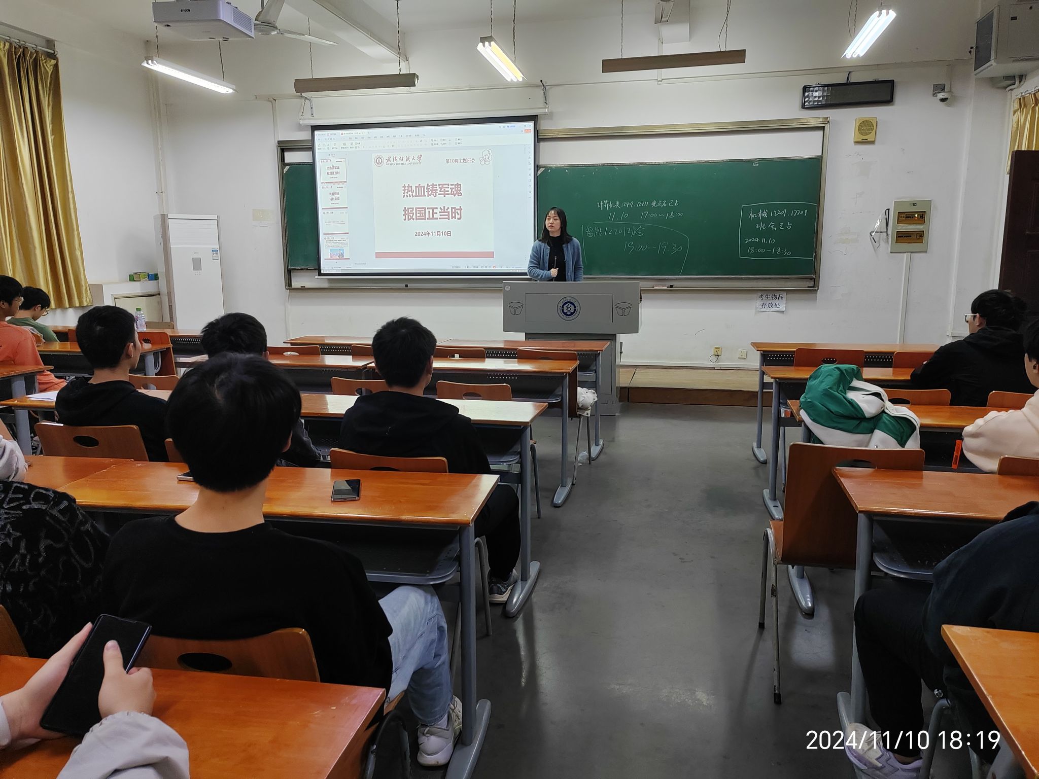11月10日下午,威廉希尔williamhill官网开展“青春担当 科创未来”主题班会,会议由辅导员和各班班主任主持,全体学生参会。此次班会聚焦征兵入伍宣讲,学习我校徐院士在央视节目上的重要讲话,宣传优秀学子的重要科创比赛成果,分享杰出校友先进事迹。