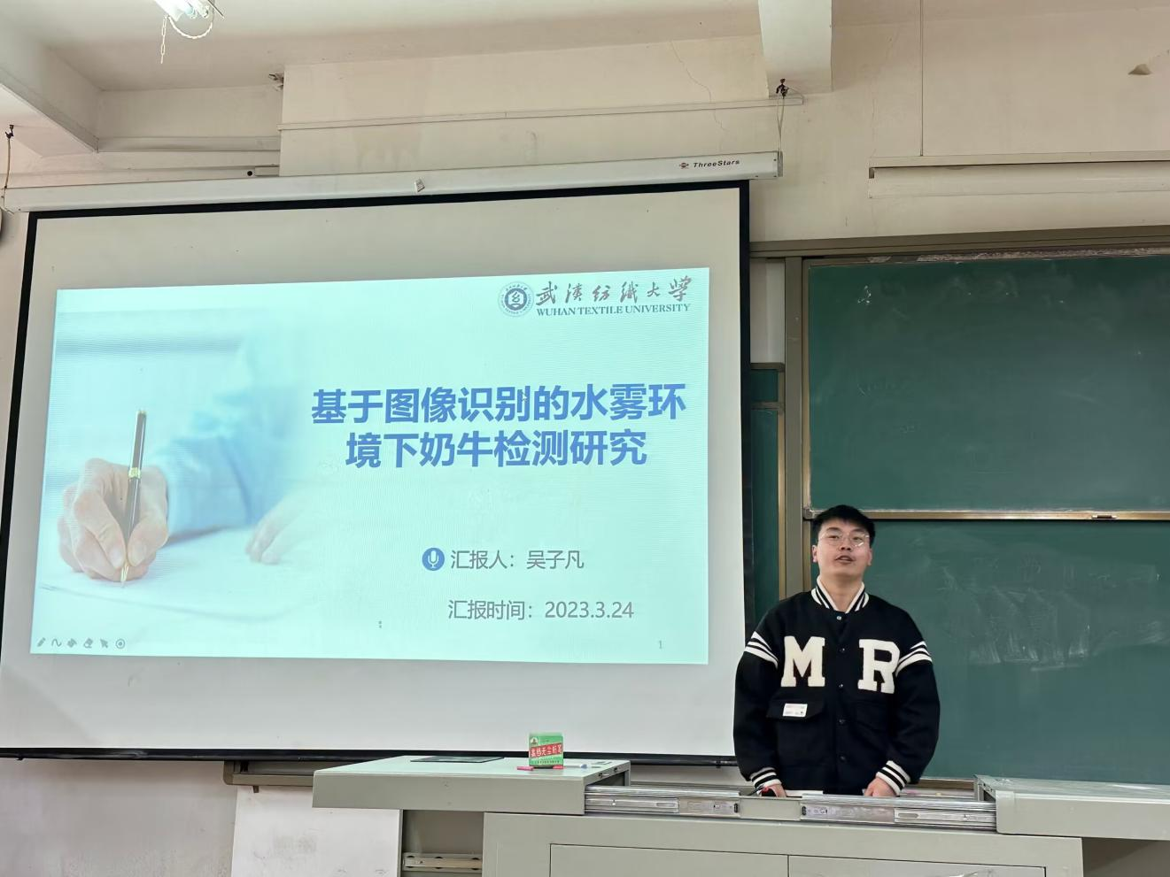 吴子凡同学的研究内容是“基于图像识别的水雾环境下奶牛检测研究”。沈忱老师针对吴子凡同学的分享给出了建议:一是目光识别造成的影响可以再细化再深化;二是研究工作量需要更饱满,需要增加更多的分析和比较;三是需要找到合适的方法,工作量充足,能够得出有效的研究结果。