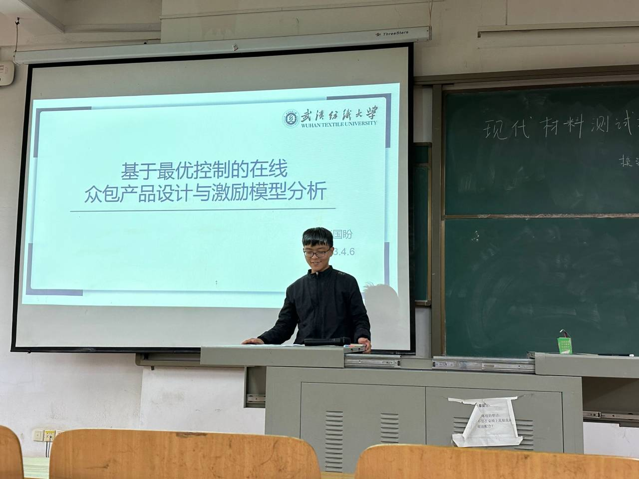 张国盼同学的研究方向是“基于最优控制的在线众包产品设计与激励模型分析”。徐巧老师对张国盼同学的分享给出了建议,一是其论文思路清晰,分析透彻,创新性较高,研究成果有一定的实用性和推广价值;二是建议尝试融入对硬件与软件结合的深度研究。