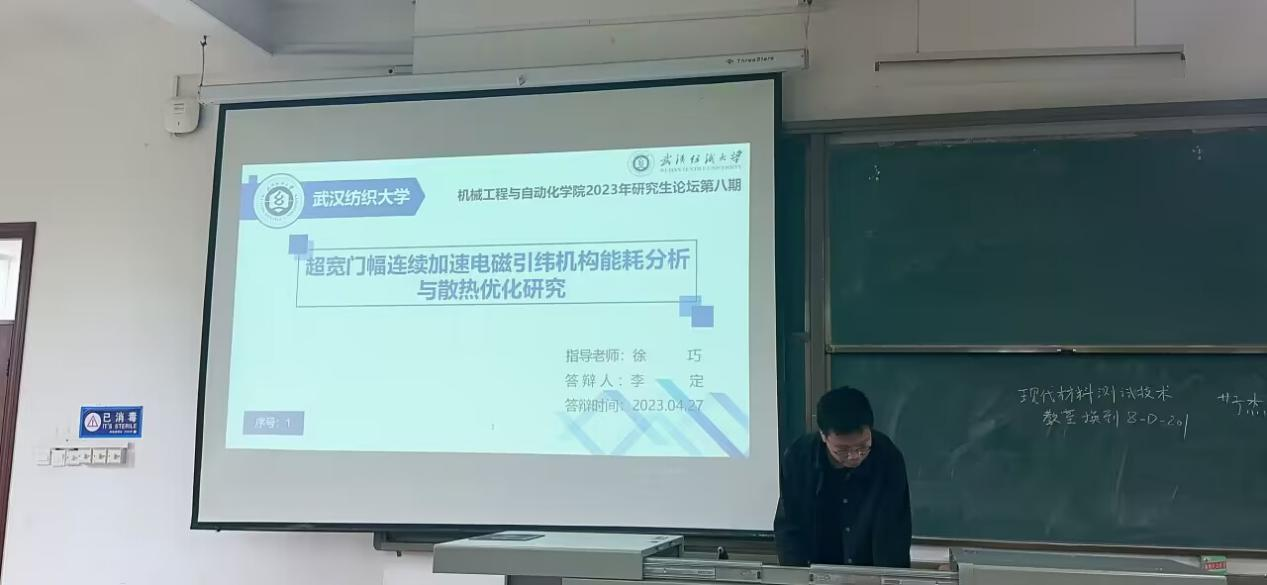 4月27日下午14:00,辅导员谢超老师组织研究生在8D-101教室参加了2023年第八期研究生论坛,本次论坛邀请左小艳教授点评,论坛由学院学生干部王意主持。本次论坛共有五位22级研究生分享了他们在“纺织机器专题”方面的研究心得。