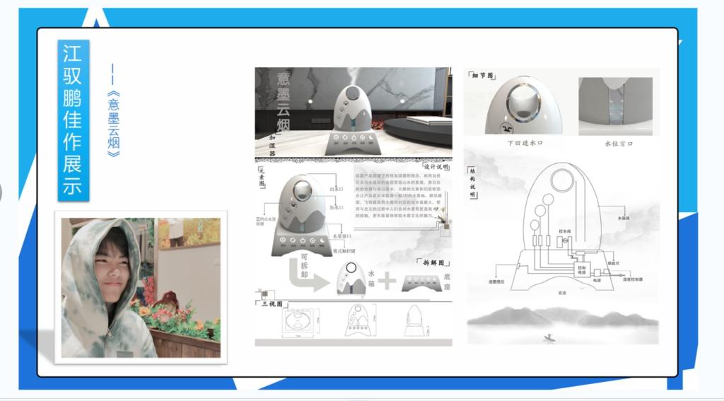 会议第二项,工业设计17级的学长学姐们纷纷讲述了自己的参赛经验。山水学姐介绍了自己的设计作品的想法来源,认为设计需要注重细节,这样才能够是一个好的设计;江驭鹏学长讲解了平时他的思路过程,提到做好一个产品设计一定要注意逻辑性。接下来袁梦、赵宏月、熊雨薇、万思怡、覃双蝶等学姐都展示了她们的优秀产品,为学弟学妹们起到了很好的榜样作用。
