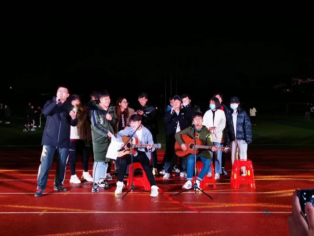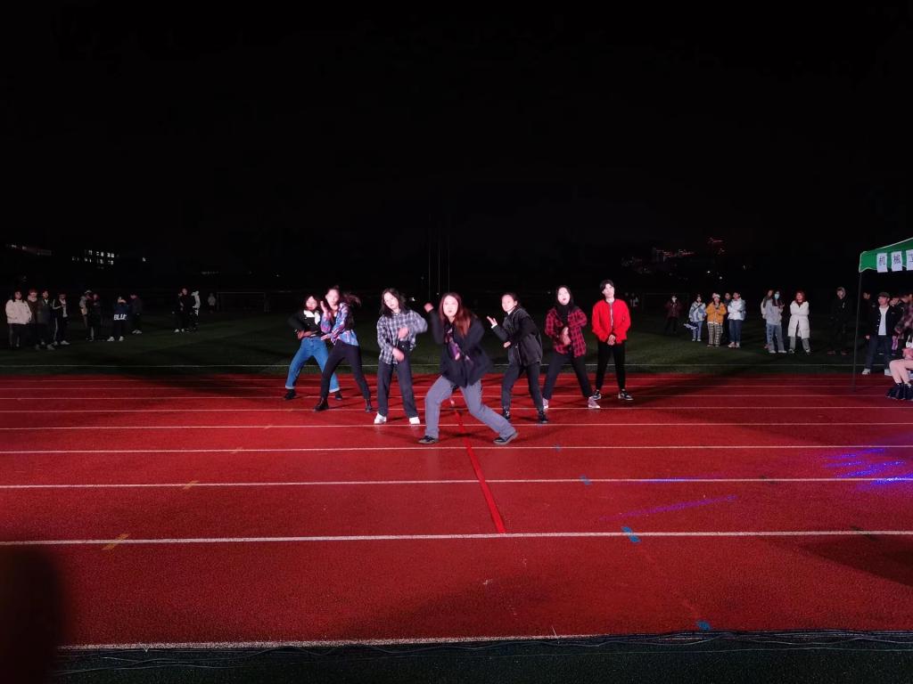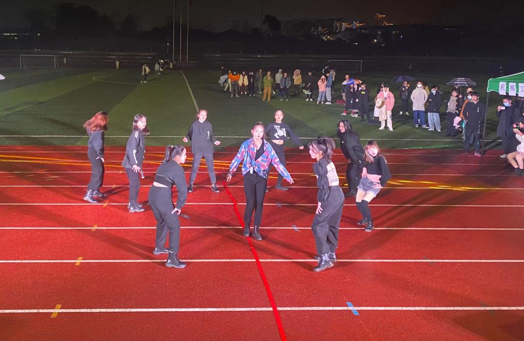 接下来的表演的是舞蹈串烧《醉酒+卡路里+隔壁泰山》,炫丽的灯光下舞者一次又一次地用充满青春活力的舞姿给观众带来不一样的视觉冲击,舞步的韵味与欢快明朗的现场气氛让运动场成为一个青春闪亮的舞台。结束绚丽多姿的舞蹈后紧接而来的是歌曲《等你下课》,虽然天气很冷,但是歌声很甜、很暖。那清脆的歌声,将同学们瞬间拉回了难忘的高中时期,并引起了同学们的全场大合唱,让人久久回味。