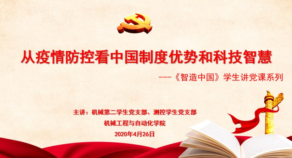 本次授课围绕“从疫情防控看中国制度优势和科技智慧”为主题,机械第二学生党支部入党积极分子何鹏同志分别从“党的领导、全民动员、舆论引导”三个维度向大家诠释了中国制度优势在抗击疫情过程中的充分体现。他总结道,面对这场突如其来的疫情,我们国家特有的社会制度和中国人民强大的凝聚力,是打赢这场攻坚战的最为坚实的保障。测控学生党支部入党积极分子赖春燕同志围绕“科学技术”为打赢这场攻坚战提供了重要保障为主题,向大家展现了中国科智慧在抗疫战场上的充分使用。通过对云技术、大数据、AI人工智等详实的举例,充分展现了在争分夺秒的疫情防控战场上,在与病毒“赛跑”的较量中,中国科技智慧所展现出的硬核力量。