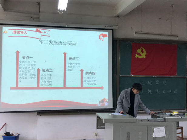 然后,邱博辉、李郑华同学给大家讲授了本期主题党课,邱博辉同学从历届的珠海航展开始介绍,从首届的歼8到第十三届歼20、AG600水陆两栖飞机等向同学们展示了属于我们国家大国重器,同时还为我们展示了第十三届珠海航展对我国的战略意义。李郑华同学慷慨激昂为我们介绍湖北的军工企业,同时还向我们展示了国家从站起来、富起来到现在强起来的历程,号召新时代青年大学生要着力提升自主创新能力,用精湛的专业知识,为国家发展做出积极贡献。