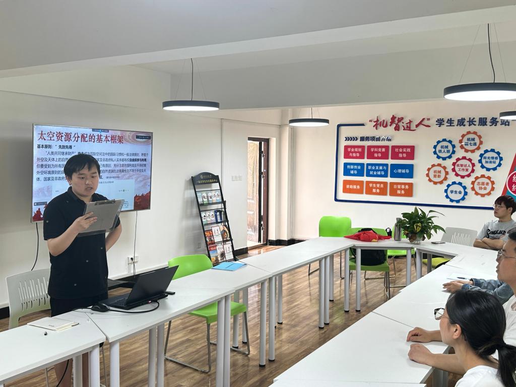 本次主题党课的主要内容为我国的航空航天技术发展历程。胡思博同学在第一部分为大家展示了一个国家为何要踏入太空、航空航天的必要性以及在激烈的航天竞争中我国开放的主人翁精神;在第二部分中徐子豪同学为大家展现了中国近现代的丰硕成果,并且诠释了伟大的中国航天精神;最后一部分由曹飞翔同学向大家说明我国近期的重大技术突破和我国未来航空航天的发展方向。中国在实现飞天梦的过程中遇到了很多困难与挑战,尽管遇到了很多困难与挑战,中国的航天事业仍然在发展与进步,中国的航天事业不仅仅是一个国家的事业,更是人类的事业,我国将在航空航天方面继续积极创新,贡献出中国力量。
