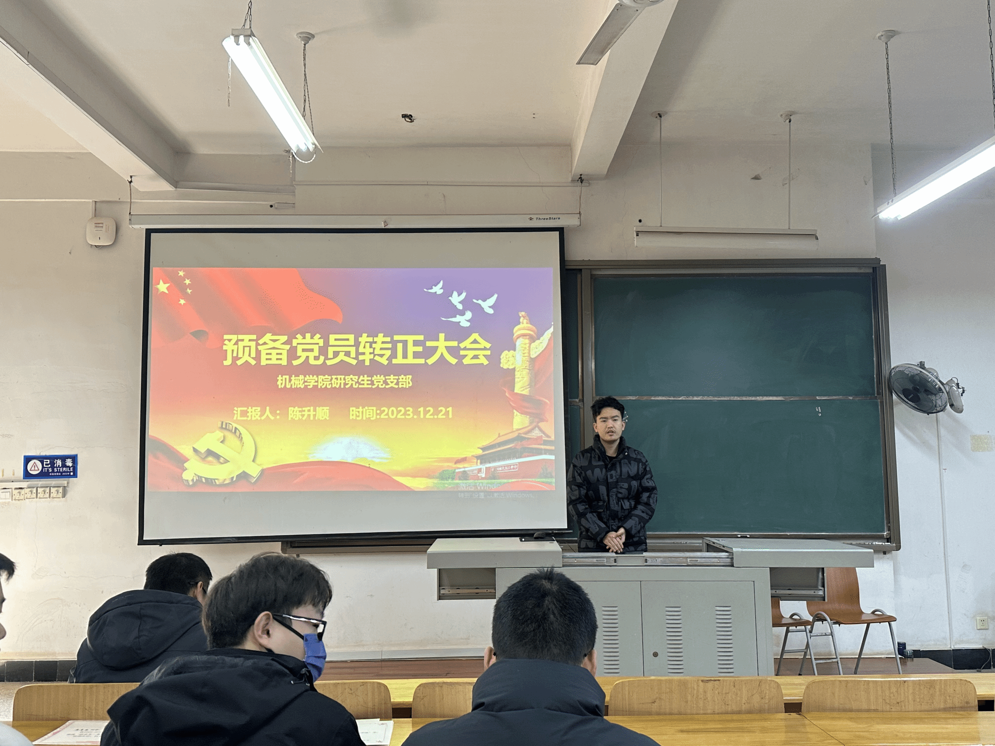 会上,预备党员陈升顺依次汇报政治品德、任职经历、为民服务、学术成果、荣誉奖励、实践经历、专业资质等方面的情况,两名正式党员进行了评议,经支部大会无记名投票表决,同意陈升顺同志转为中共正式党员。