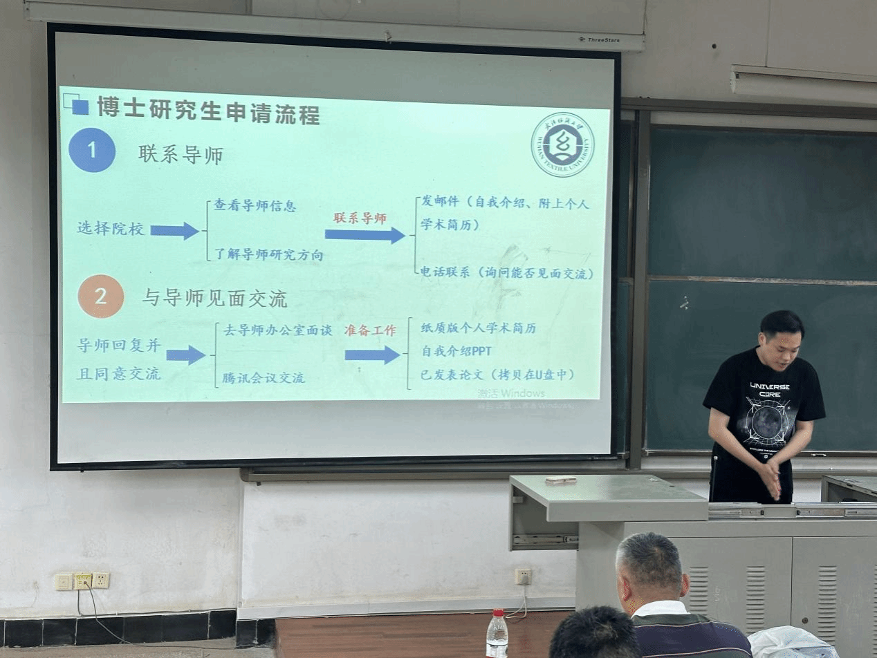 叶沛彦,成功考取武汉理工大学博士学位的学长,讲述了他的申博经历,强调了目标明确和持续努力的重要性,他分享了如何在研究生学习中制定学术目标,并与听众探讨了科研方向的选择和实验室的工作方式。